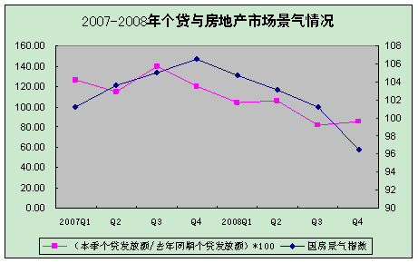 住房公積金個(gè)人貸款與房地產(chǎn)市場景氣情況密切相關(guān),2007年四季度以來,由于房地產(chǎn)市場表現(xiàn)低迷,個(gè)人貸款發(fā)放呈下降趨勢,2008年三、四季度個(gè)貸發(fā)放額同比分別減少18.34%、14.95%,全年同比減少165.64億元,降幅為7.52%。2008年末,全國個(gè)貸率(個(gè)人貸款余額/繳存余額)為50.30%,同比減少2.53個(gè)百分點(diǎn)。