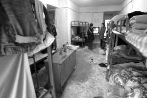 昨天中午,記者來到楊女士所住的小區(qū):江北金源路工商大學集資樓內。在四單元9樓6號房,記者敲開了住滿28人的房門,頓時一陣熱氣夾雜著汗味撲面而來,一位小伙子正坐在一張雜亂的床鋪上玩著電腦,他告訴記者,住在里面的人都是附近一家酒樓的員工。
