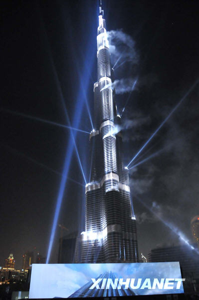 據(jù)美國媒體5日報道,在炫目的煙花和觀眾的歡呼聲中,迪拜1月4日向世人揭開了世界第一高樓的面紗,宣布這棟舉世無雙的“擎天柱”高828米。