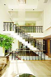 抽象的用形是空間中個(gè)性的表現(xiàn),形的取材來自于自然的樹的形狀,同樣是加以抽象與模糊,便成了主題樓梯的扶手。