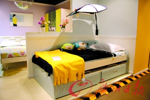 記者看到很多類似組合:高架床,床旁邊是一個小扶梯,扶梯臺階由幾個抽屜拼成,抽屜可以儲放衣物。床下面是一個轉(zhuǎn)角電腦學習桌,可以放置一臺電腦,又可以當書桌使用。在電腦桌旁還放有一個小衣柜,可以放置一些常用衣物。另一轉(zhuǎn)角處有一個文件柜,可以放學習資料和書籍。電腦桌被分隔成二層,底下的一層還可以放小物件、書籍等。大約兩平方米的空間就這樣被充分利用起來了。