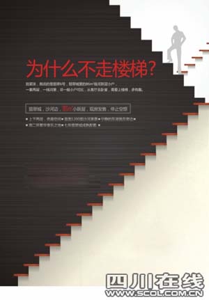 秋季房交會就快到了,成都樓市又進入了“金九銀十”的銷售旺季,各開發(fā)商紛紛加大推廣力度,一時間,無論報紙、站臺、網(wǎng)絡(luò)、短信、廣播幾乎都成了房產(chǎn)廣告的主戰(zhàn)場。開發(fā)商加大廣告投入,一方面是對十一假期抱有一定預(yù)期,另一方面也是為即將舉行的秋季房交會預(yù)熱,期待讓更多購房者了解自己的樓盤。但連篇累牘的廣告,鋪天蓋地的資訊,總讓人目不暇接,卻難以留下深刻印象。以至于不少開發(fā)商抱怨,廣告費不斷攀升,廣告效果卻不夠理想。但事情總有例外,最近記者就發(fā)現(xiàn)了幾個能在眾多廣告中脫穎而出的創(chuàng)意廣告。