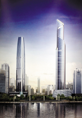 “這里有世界上最高的酒店大堂。從地下乘坐電梯到酒店大堂只需50秒到一分鐘就可以俯視全城,電梯平均上升速度達每秒約9米。”設計師介紹,東塔的設計還具有使用率高和綠色環(huán)保的特點,其外立面將采用玻璃幕墻加石材的復合建材,可以有效減少太陽光的反射。