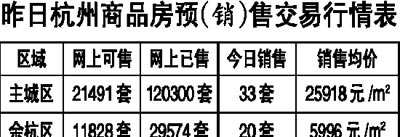 昨日,杭州主城區(qū)預定以及交易數量大幅下挫,預定量從前一個交易日的145套驟減為15套,交易量也從89套降至33套,成交均價為25918元/m2。余杭區(qū)再次延續(xù)了前日的下降走勢,預定數量從3套下跌為1套,交易量也從36套減少為20套,成交均價為5996元/m2。