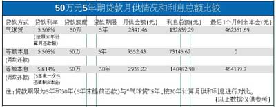春節(jié)剛過,深發(fā)展就推出了一款新型的貸款方式——“氣球貸”。那么,相比此前各大銀行推出的貸款產(chǎn)品,氣球貸在月供和利息總額上到底有何優(yōu)劣勢(shì)?本報(bào)記者請(qǐng)北京中原三級(jí)市場(chǎng)部研究中心的專業(yè)人士對(duì)三種貸款期限進(jìn)行了比較后,總結(jié)出適合做氣球貸的消費(fèi)人群特點(diǎn)。
