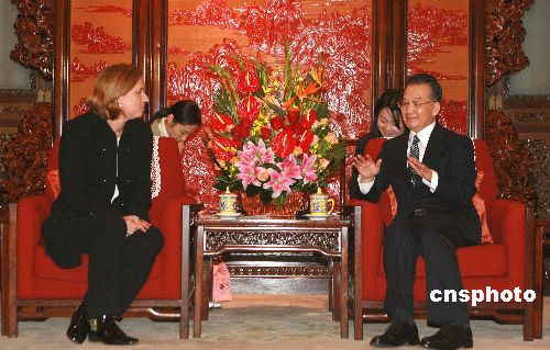 十月三十日,中國國務(wù)院總理溫家寶在北京中南海紫光閣會(huì)見以色列第一副總理兼外交部長(zhǎng)齊皮·利夫尼。中新社發(fā) 廖文靜 攝