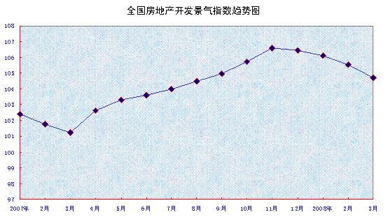 中新網(wǎng)4月18日電 據(jù)國家統(tǒng)計局網(wǎng)站消息,3月份,“國房景氣指數(shù)”為104.72,比2月份回落0.83點,同比上升3.50點。