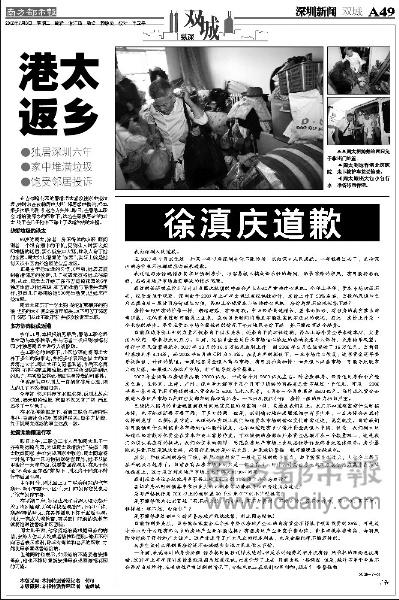 “我向深圳人民道歉!痹趶V告中,徐滇慶第一句就是表示要向深圳市民道歉。他在道歉信中表示,“在2007年7月我說過,如果一年以后深圳房價不漲的話,我向深圳人民道歉。一年就要過去了,無論深圳的房價漲不漲都理應(yīng)由我來道歉!