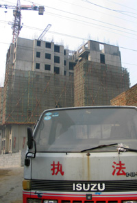 鄭州市行政執(zhí)法局監(jiān)察支隊(duì)隊(duì)長焦凱旋向記者介紹說,這八幢樓占地30多畝,在沒有取得建設(shè)和規(guī)劃許可證的情況下,就上了六支施工隊(duì)伍上千人進(jìn)行建設(shè),執(zhí)法人員多次制止未果,直到今年9月份仍然在施工。執(zhí)法人員采取了暫扣工具、出動車輛堵住施工入口等辦法,才停止施工。