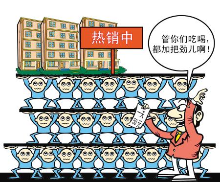 在北京市朝陽區(qū)東八里莊的一個居委會里,張大媽近日又開始忙起來了,同往年一樣,她又接受了東四環(huán)幾個待銷樓盤的邀約,組織一批老年人到幾個售樓中心“簽約”,一天管吃喝還凈掙50元。據介紹,他們有時還要到國貿春季房展會上演“訂房”,前臺簽單,后臺拿錢走人。(4月6日《人民日報》)