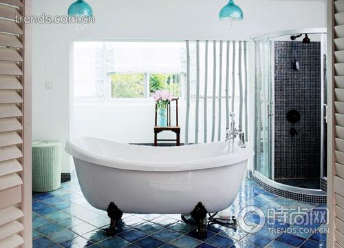 細(xì)節(jié)是小米比較關(guān)注的。主浴室兼顧了清潔與休閑兩個(gè)功能,地面是湛藍(lán)湛藍(lán)的光面磚,白色的墻身,延續(xù)著地中海的藍(lán)與白,“因?yàn)樵∈易钪匾墓δ苁欠潘,所以選擇的色系盡量簡單純凈,用刷白了的竹子作為大空間的隔斷,主要是做視覺上的劃分,分隔出清潔區(qū)與休閑區(qū):清潔區(qū)就是浴缸及洗手盆那一區(qū),主要突出功能的一面;我將陽臺(tái)打通,做出一個(gè)女性都會(huì)喜歡的陽光花房作為休閑空間,雅致的淡綠色布簾幔與窗外的綠意相合。浴室就是身心放松的空間,是我設(shè)計(jì)里比較注重的地方!
