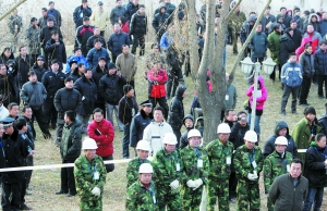 8時(shí)許,強(qiáng)拆人員在別墅周?chē)暇渚,80名城管人員、數(shù)十名民警和其他部門(mén)工作人員分散在警戒線周?chē)S持秩序。