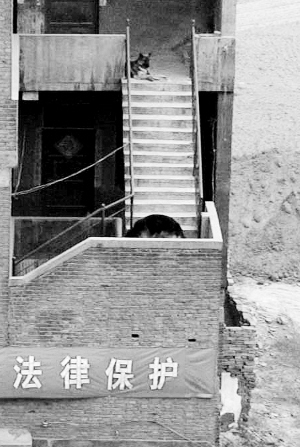 郭長(zhǎng)喜說(shuō),自己家本來(lái)養(yǎng)的有一條狗,但看到周圍鄰居拆遷遇到的問(wèn)題,就花錢(qián)買(mǎi)了兩條牧羊犬。從此,三只狗天天為這個(gè)家站崗放哨。記者采訪過(guò)程中,一只牧羊犬一直臥在露天樓梯上,目光炯炯的望著四周。