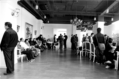 昨天中午12點(diǎn),位于海淀區(qū)東升鄉(xiāng)馬坊村的“北岸·布魯斯二期”售房處已被業(yè)主們圍得水泄不通,業(yè)主維權(quán)委員會(huì)成員正組織現(xiàn)場(chǎng)業(yè)主在拒收鑰匙的名單上簽字。記者看到,表格上已有五六十名業(yè)主簽字。一位售樓中心的工作人員說(shuō),目前應(yīng)有近200名業(yè)主已經(jīng)領(lǐng)取了鑰匙。