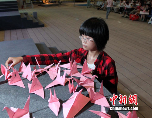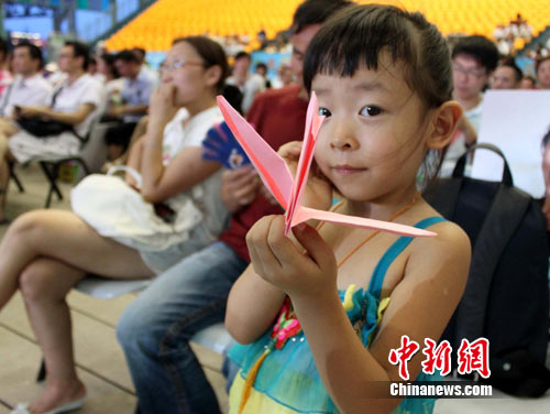 而經(jīng)典紅歌音樂會(huì)現(xiàn)場的近千名世博游客也紛紛親手折制紙鶴,將其一一放到舞臺(tái)上為舟曲人民祈福,整場音樂會(huì)充滿溫馨與感動(dòng)。