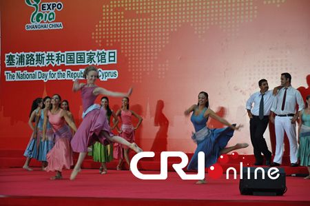 慶典活動上,來自塞浦路斯著名的舞蹈團隊“基雅斯達西”為大家?guī)砹私?jīng)典作品“海浪之聲”!昂@酥暋币詯叟c美之女神阿芙洛狄蒂為主角。這個神話人物也是塞浦路斯國家館的主題標志。