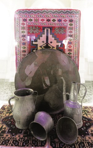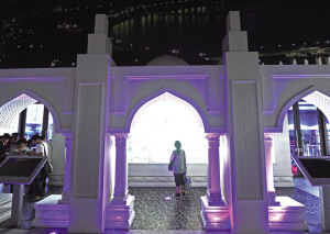 走進展館,仿佛置身于首都巴庫的老城區(qū)——內(nèi)城。阿塞拜疆是人類最古老的定居地之一,巴庫古城至今完整保留著修建于12世紀(jì)的汗王宮殿建筑,被稱為“內(nèi)城”,擁有迷宮般的狹窄巷道,景致如畫。