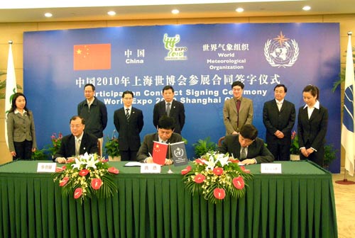 中新網(wǎng)5月9日電 據(jù)中國氣象局網(wǎng)站消息,5月9日上午,世界氣象組織展區(qū)總代表、中國氣象局副局長許小峰代表世界氣象組織與上海市政府副秘書長、上海世博會(huì)事務(wù)協(xié)調(diào)局局長洪浩簽訂了《中國2010年上海世博會(huì)參展合同》。這標(biāo)志著首個(gè)國際組織正式簽訂了上海世博會(huì)參展合同。