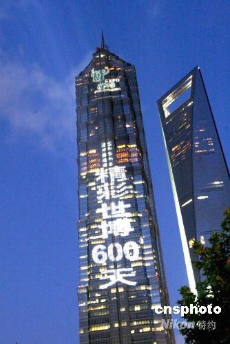 圖:上海金茂為世博會(huì)倒計(jì)時(shí)舉行亮燈儀式