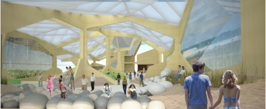 迎接觀眾的第一道自然景觀是海岸,將著重體現(xiàn)對(duì)能源的合理應(yīng)用。這里將向觀眾顯示怎樣通過利用太陽能、風(fēng)能和波浪能等可再生能源,來提高人們的生活品質(zhì),改善城市地區(qū)的氣候。