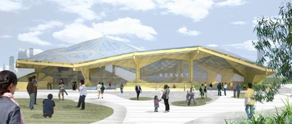 在上海世博會(huì)期間,挪威將在世博浦東園區(qū)C片區(qū)建設(shè)占地3000平方米的自建館。挪威此次以“挪威•大自然的賦予”為主題參展上海世博會(huì),展館將由15棵巨大的“樹”構(gòu)成,模型樹的原材料來自木頭和竹子,并可在展后再利用,充分體現(xiàn)了 “可持續(xù)發(fā)展”的理念。