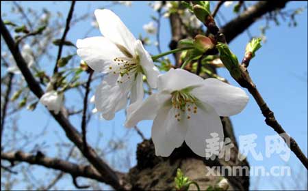櫻花:與往年相比,今年上海櫻花的花期足足提早一周。在上海植物園櫻花林中,已有一些櫻花樹上綻開了花朵。植物專家預(yù)計(jì),3月24日起櫻花將進(jìn)入初花期。