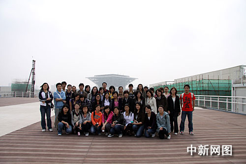 在中國2010年上海世博會倒計時即將進入一年之際,世博會園區(qū)的“一軸四館”建筑已全部完成封頂,造型初現(xiàn)。而在之前,世博倒計時600天的時候,復(fù)旦大學(xué)新聞學(xué)院學(xué)生作為世博園區(qū)第一批公眾游客,前往世博園區(qū)開展攝影活動,并將優(yōu)秀攝影作品制成明信片進行義賣。在今天去世博園區(qū)的路上,大家通過傳閱明信片,對世博工地的情況有了初步了解。進入世博園區(qū)工地后,學(xué)生們在園區(qū)“一軸四館”攝影留念,許多學(xué)生在下車后都被眼前初具規(guī)模建筑的恢宏氣勢所震撼,規(guī)模宏大的演藝中心,現(xiàn)代氣息濃郁的世博中心,還有貫通整個園區(qū)主體建筑的世博軸,鋼架林立、電弧花飛濺的世博園區(qū),甚至是建筑工人們的臨時住房,都在一聲聲快門和贊嘆聲中收入學(xué)生們的鏡頭之中。