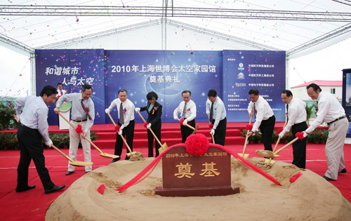 國務(wù)院國資委副主任黃淑和,上海市委常委、常務(wù)副市長、上海世博會執(zhí)委會常務(wù)副主任楊雄,上海世博會執(zhí)委會專職副主任鐘燕群,國務(wù)院國資委外事局副局長姜維亮,上海世博會事務(wù)協(xié)調(diào)局副局長黃健之,中國航天科技集團公司副總經(jīng)理吳卓,中國航天科工集團公司副總經(jīng)理高紅衛(wèi),中國電子科技集團公司科技委副主任趙正平等出席了奠基儀式。