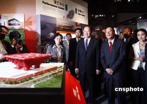 7月5日,上海世博會倒計時300天之際,由世博會組委會主辦的“走進(jìn)世博會”大型展覽在北京首都博物館開幕,國務(wù)院副總理王岐山、上海市委書記俞正聲等出席啟動儀式。本次展覽匯集了最全面的上海世博會籌辦進(jìn)展資料,其中首次亮相的59個展館實物模型、中國館“萬花筒”、張藝謀團(tuán)隊最新制作的世博園虛擬電影,是本次展覽會的亮點(diǎn)。中新社發(fā) 鄭雄增 攝