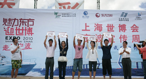 11日上午,“魅力東方迎世博--走進(jìn)寧波”大型直播活動(dòng)在象山松蘭山海灘舉行。直播活動(dòng)全面報(bào)道了寧波市迎接2010年上海世博會(huì)的情況,各類主題剪紙表演、專家訪談、小朋友百米兒童畫、沙灘趣味運(yùn)動(dòng)會(huì)、手語表演、民俗演出等活動(dòng),讓夏日的海灘活力十足。上海世博局國(guó)內(nèi)參展顧問黃耀誠(chéng)現(xiàn)場(chǎng)向5位幸運(yùn)市民頒發(fā)了世博請(qǐng)柬,送出了來年之約。
