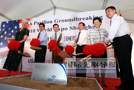 17日,今夏入伏后的第4天,上海最高氣溫升至36攝氏度。幾乎是在“烘烤”的氣氛下,美國商務(wù)部長駱家輝、中國商務(wù)部副部長馬秀紅、上海市常務(wù)副市長楊雄以及剛被奧巴馬政府任命為上海世博會美國展區(qū)總代表的何塞·維拉里爾、美國駐滬總領(lǐng)事康碧翠、上海世博會事務(wù)協(xié)調(diào)局局長洪浩等共同為美國館奠基培土。