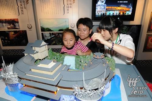 一位老人帶著他的小孫女在貴州館模型前仔細(xì)觀賞,“孩子你看,這個(gè)是黃果樹(shù)瀑布,這個(gè)是苗族女孩子在節(jié)日里穿的衣服,這個(gè)是……”老人表示,這是一個(gè)很好的機(jī)會(huì),帶孩子來(lái)了解一下自己年輕時(shí)工作的地方,也讓她能夠多增長(zhǎng)一些世博知識(shí)。更重要的是,貴州可以說(shuō)是他的第二故鄉(xiāng),前來(lái)參觀也是為了對(duì)貴州參展表示支持。