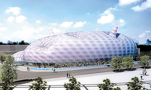 除了能夠提供能量,紫蠶島的外衣也能在炎炎夏日給自己降溫。據(jù)介紹,連接小氣枕之間的金屬扣件上設(shè)置了許多小噴頭,天氣炎熱的時候可以對氣枕持續(xù)噴灑,形成一層流動的水膜,在帶走熱量的同時還使外衣表面一塵不染,時刻晶瑩剔透。紫蠶島的外衣雖然擔(dān)負(fù)的功能強(qiáng)大,但是它卻一點(diǎn)也不臃腫沉重!白闲Q島使用的膜和奧運(yùn)場館水立方使用的是同一種,這種膜結(jié)構(gòu)還能有效減輕建筑物總重量!痹O(shè)計師介紹說。