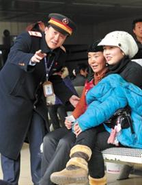 “您好,有什么需要為您服務的嗎?”在鐵路上海站售票大廳的 “程薇服務臺”,全國用戶滿意服務明星從上珠正熱情招呼著一位70多歲的老人。老人想要了解從上海開往香港九龍的列車時刻表,從上珠很快從電腦中調出資料,給了老人滿意的答復。從上珠告訴記者,老弱病殘孕等重點關注人群在他們這里購票后,如需相關的接送服務,他們會與設在進站大廳的 “張慶桓服務臺”聯系,由工作人員負責護送到候車室,并向所搭乘列車的列車長進行告知,給予特殊照顧。