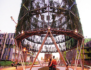 說起城市的標志性建筑,你的腦海中或許會閃現(xiàn)埃菲爾鐵塔、自由女神、悉尼歌劇院、東方明珠、迪拜塔……而對于西班牙馬德里來說,則是竹屋和“氣候樹”。竹屋原是政府提供給低收入人群居住的廉租屋,但它獨特的設計為居住者創(chuàng)造了一種“回歸自然”的原生態(tài)氛圍!吧鷳B(tài)氣候樹”則是馬德里生態(tài)大道三座圓柱形鋼結(jié)構(gòu)建筑之一。“樹”上安放了各種綠色植物,“樹”頂安裝有太陽能電池板。一到夜間,此處就成了音樂的天堂,白天儲存的電力完全可以滿足照明、音響的需要。在世博城市最佳實踐區(qū)北部街區(qū),設計師將把這兩個建筑的精髓呈現(xiàn)給參觀者。