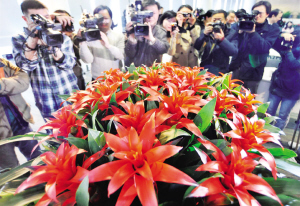 “中國紅”是鮮花港科技興市重大攻關(guān)項目的最新成果。這一鳳梨花新品色澤純正花型飽滿,葉片大花期長,環(huán)境適應(yīng)性強,是較理想的室內(nèi)用花。(薛慧卿 孫中欽)