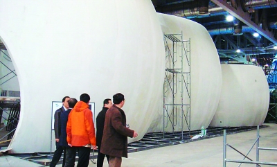 在山東館前,我們看見地面幾位工程師正在商量,上面的架子上幾位工人正在施工。王錦珍副會(huì)長向正在那里的施工負(fù)責(zé)人詢問進(jìn)展情況,施工負(fù)責(zé)人回答說,我們施工進(jìn)展很順利,這個(gè)月底就可以完工,并將很快轉(zhuǎn)入試運(yùn)行。月底,省里的領(lǐng)導(dǎo)還將到這里來檢查。