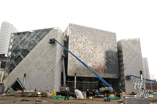 16日,隨著正立面最后一根腳手架安全落地,上海世博會國家電網(wǎng)館終于展露全貌,以其獨特的“魔盒”造型迎接世博會的到來。