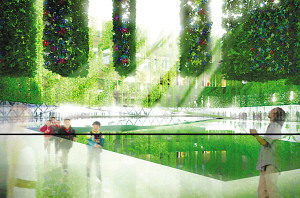 “建筑內(nèi)部的綠色立體園林,也使用了可降解、可循環(huán)的材料,以盡可能達(dá)到最大限度的環(huán)保。這些綠色的植物,除了可以讓人們親近自然,還能夠幫助調(diào)節(jié)室內(nèi)溫度,讓參觀者更加舒適。屋頂?shù)奶柲茈姵匕,則提供了清潔而免費(fèi)的能源!狈娇烧f。