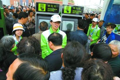 上午9時許,記者來到位于亞洲廣場兩個最靠近中國館的預約點,近20臺預約機滿負荷運作,可排隊等候的長龍還是一直蜿蜒到了人行通道上。記者了解到,短短一個小時里,中國館一天5萬個參觀名額幾乎全部滿額。