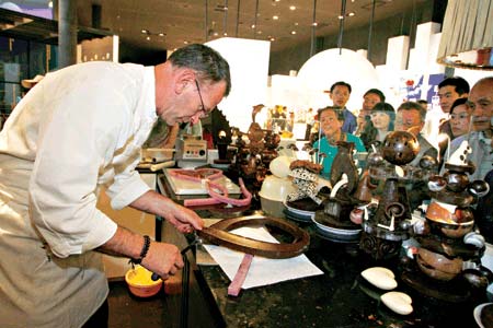 很少有游客會知道,從他的手下誕生的巧克力是有“巧克力中的勞斯萊斯”美譽的藝術(shù)品,而他的粉絲中更有美國前總統(tǒng)克林頓、女星伊麗莎白·泰勒等大牌人物。在結(jié)束他15天的上海世博會之行前,特里·莫瑞接受了本報記者的專訪。他興奮地告訴記者,回到比利時,他就將研發(fā)一款“中國味”巧克力。