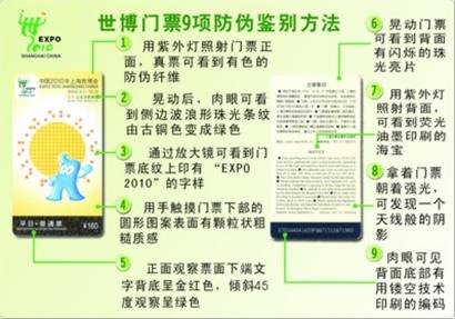 世博會園區(qū)現場白蓮涇、高科西路、長清北路、上南路、后灘、魯班路、西藏南路、半淞園路、馬當路、東昌路水門等10個出入口,銷售當日普通票、當日優(yōu)惠票、當日夜票等三種門票。