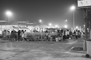 500多人在圍欄邊席地而坐,或聊天或瞌睡,為的是上午9時(shí)開(kāi)園后第一時(shí)間進(jìn)入……這是今晨1時(shí),記者在世博園區(qū)浦東上南路入口處看到的情形。同樣的一幕,也出現(xiàn)在了距離文化中心較近的長(zhǎng)清路、洪山路、高科西路等入口,總?cè)藬?shù)不下2000人。如此場(chǎng)面,令值夜班的安保人員傻了眼,“開(kāi)園第一天也沒(méi)這么早來(lái)的,有的昨天還沒(méi)閉園就來(lái)了!”