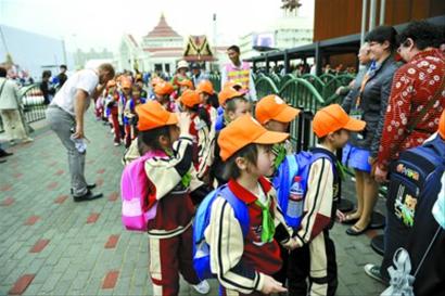 這兩天,世博園里出現(xiàn)了很多身著校服,組隊(duì)游覽的中小學(xué)生。原來,他們都是參加“考后世博游”的孩子。期末考試結(jié)束后,本市和外省市的不少中小學(xué)立即組織學(xué)生前往世博園,把這里當(dāng)作了新的課堂。對此,華師大副校長任友群教授表示,中小學(xué)應(yīng)充分利用世博會資源,在即將到來的暑假和新學(xué)期中,由老師帶領(lǐng)學(xué)生進(jìn)園區(qū),開展“世博教學(xué)”。