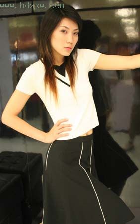 內(nèi)斂和個性融合得比較好的一套職業(yè)套裝,適合出席正式商務(wù)會談。衣服和裙子的黑、白條紋使整體造型干練不失沉悶。黑白鑲嵌的A字領(lǐng)設(shè)計,襯托模特臉形的直線型輪廓。下半身搭配富有懸垂感的A裙,帶一點(diǎn)柔媚氣息。