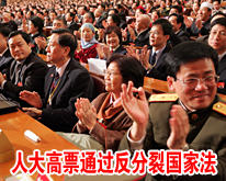 ·溫家寶主持會議 研究落實政府工作報告中的任務(wù)(16日) ·總政要求全軍和武警學(xué)習(xí)人大十屆三次會議精神(15日) ·關(guān)于2004預(yù)算執(zhí)行情況和2005預(yù)算草案報告(全文)(15日) ·軍隊人大代表:致力和平統(tǒng)一 堅決反對“臺獨”(15日) ·人民日報:團結(jié)奮斗 共創(chuàng)幸福生活和美好未來(14日) ·溫家寶“用心回答問題”-兩會總理記者會側(cè)記(14日) ·溫家寶在十屆全國人大三次會議上的政府工作報告(14日) ·兩會觀察:統(tǒng)一與發(fā)展 2005年“兩會”和弦伴奏(15日) ·兩會觀察:中部不甘人后 中國經(jīng)濟需挺直“腰桿”(14日) ·兩會觀察:勞務(wù)供需大省對話“民工荒”(14日) ·兩會觀察:中國證券市場打破困局三大難題待解(14日) ·兩會訪談:“三個安徽”謀求“奮力崛起”(13日) ·兩會訪談:天然資源寶庫怒江流域急待合理開發(fā)(13日) ·兩會訪談:“我為什么提交這么多議案!”(13日) ·花絮:搶座位男士展風(fēng)度 搶新聞記者擺烏龍(14日) ·溫家寶兩答反分裂國家法:堅定表態(tài) 溫情"釋法"(14日) ·上海臺商:把保護臺胞權(quán)益寫入法律“感覺很好”(14日) ·為什么要提建設(shè)“和諧社會”(15日) ·中國正在走向成熟-北大學(xué)者熱評今年“兩會”(14日) ·陳孔立指出《反分裂國家法》展現(xiàn)大陸誠意善意(14日) |