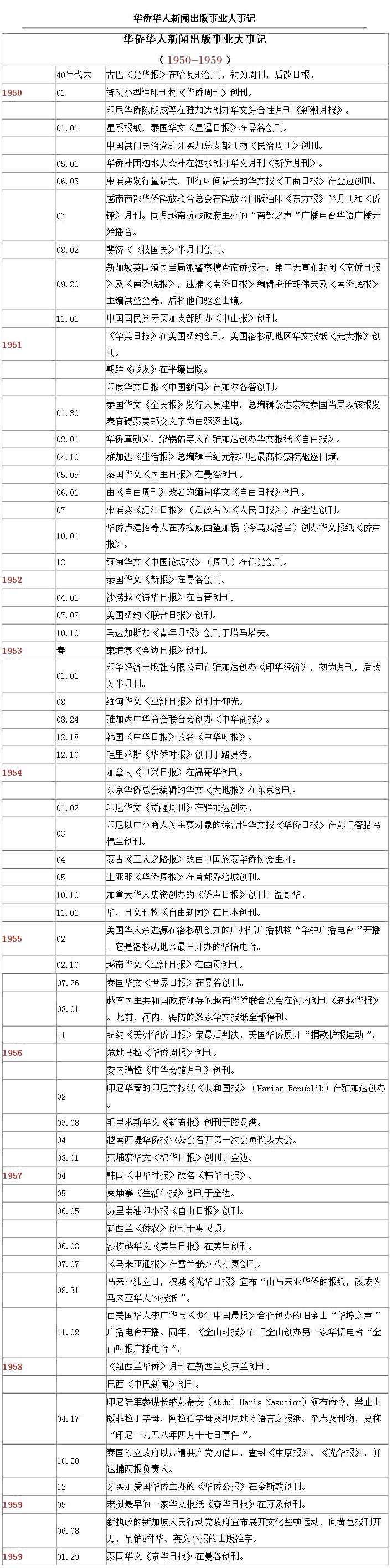 海外華文傳媒大事記