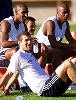 如果說四年前的世界杯得主法國隊(duì)靠水泄不通的防守奪得世界杯,本身還有缺點(diǎn)的話,那么就是他們的鋒線還有一些問題。不過,現(xiàn)在這個(gè)問題隨著亨利、特雷澤蓋以及阿內(nèi)爾卡的成熟,已經(jīng)得到了很好的解決。可以說,現(xiàn)在的法國隊(duì)已經(jīng)接近完美。在中場,攻擊型中場齊達(dá)內(nèi)和防守型中場維埃拉構(gòu)筑的"鋼腰",以及由德塞利、圖拉姆和利扎拉祖聯(lián)手的"鐵壁"則能充分顯示出法國隊(duì)的真正價(jià)值。正是這"力"與"巧"的諧調(diào)為沒有間歇的攻擊、攻守兼?zhèn)涞母邏鹤闱蛞约敖z絲相扣的組織能力提供了可能性。