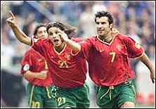 雖然自從1966年以來,葡萄牙隊僅僅3次打進過世界杯決賽圈,而上一次是在1986年,雖然他們在世界杯歷史上最好戰(zhàn)績也僅是1966年的第三名,但這這個國家卻從來不缺少天才球星。葡萄牙歷史上最成功球星"黑豹"尤西比奧,不知在他的那個時代令多少足球?qū)I(yè)人士所折腰,F(xiàn)在,那批在1989年和1991年連續(xù)兩年取得世界青年足球錦標賽冠軍,被稱為"黃金一代"的球星們也已經(jīng)成長起來。費戈剛剛當(dāng)選世界足球先生,而他的同胞魯伊-科斯塔也在意大利賽場書寫著自己的輝煌。