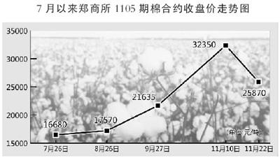 以鄭商所棉花期貨的主力合約——明年5月到期交割的棉花期貨為例,該期貨今年9月份開(kāi)始一路暴漲,當(dāng)月棉價(jià)暴漲達(dá)20.83%,9月底報(bào)收2.16萬(wàn)元/噸;10月份再漲25.9%,報(bào)收2.72萬(wàn)元/噸,到11月初更是突破3萬(wàn)元大關(guān),11月10日的盤(pán)中最高價(jià)為3.37萬(wàn)元/噸,短短3個(gè)月時(shí)間里,期棉價(jià)格就漲了一倍。不僅棉花期貨,白糖、食用油等農(nóng)產(chǎn)品期貨都出現(xiàn)暴漲。